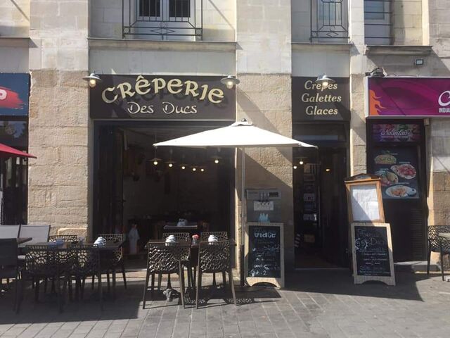 Si vous êtes à la recherche d’une crêperie confortable pour un dimanche après-midi détendu, alors venez chez nous dans la « CREPERIE DES DUCS L'Original Noblesse de la Galette ». Dans notre crêperie, nous sommes impatients de vous accueillir pour un café et une gourmandise. nn Nous proposons aussi des plats végétariens à nos invités – donc tout le monde trouvera une spécialité à son goût. Nous vous montrerons à quel point il est facile de passer à une alimentation saine avec un choix d’aliments délicieux.nn Notre magnifique espace extérieur est particulièrement accueillant par temps chaud.